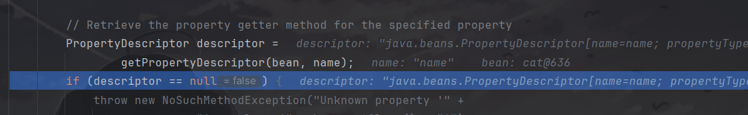 然后继续步入,走到PropertyUitlsBean中的getProperty方法。