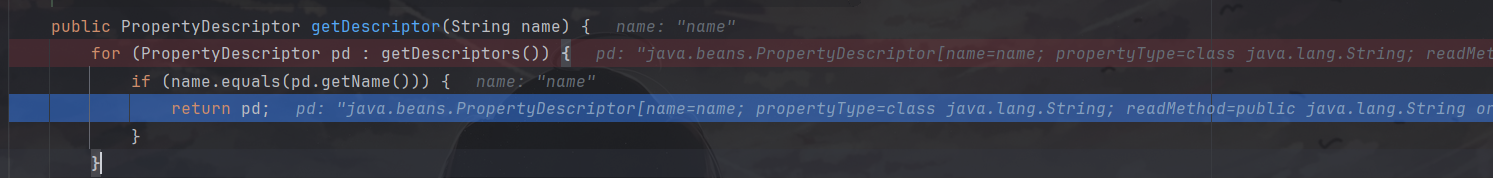 然后返回到getDescriptor中对获取到的getName以及其他方法进行遍历,最后返回我们所需要的那个类。