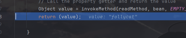 调试之后可以发现while(resolver.hasNested(name))是直接为false的,没有进入while循环中,然后因为bean不为map,引索,以及映射的属性,于是就进入了getSimpleProperty中