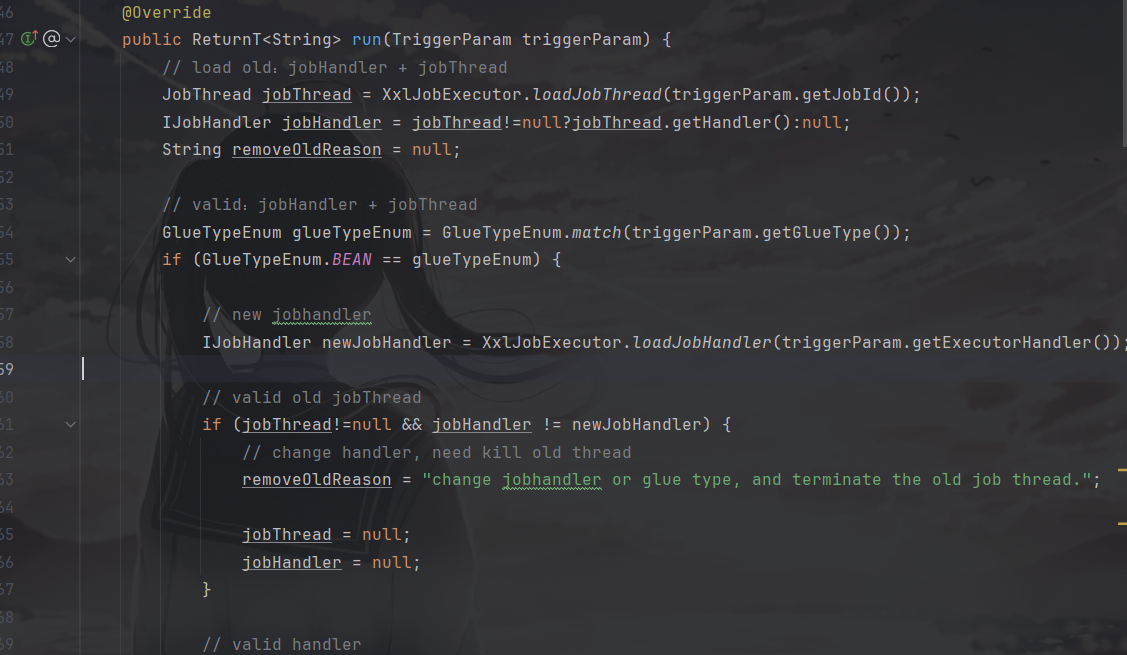 进入com.xxl.job.core.biz.impl.ExecutorBizImpl中,可以看到他的run方法。