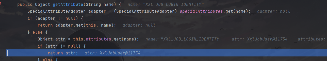 进入getAttribute中,这个接口有挺多实现的,可以挨个去瞅瞅或者直接调试,最终发现是使用的org.apache.catalina.connector.ReqestFacade中定义的getAttribute方法。
