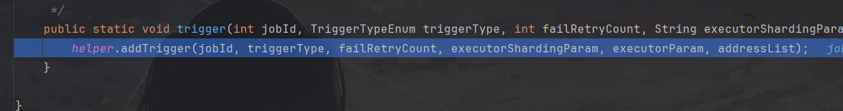 // 4、trigger remote executor ReturnT<String> triggerResult = null; if (address != null) { triggerResult = runExecutor(triggerParam, address); }