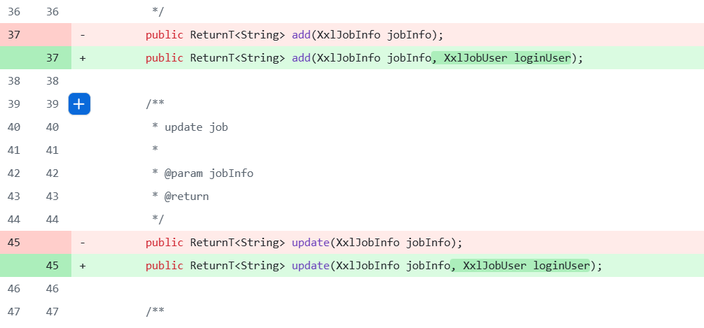 可以看到,作者在修复时对add接口与update接口都添加了LoginUser参数,这个参数是用于判断当前用户的参数。