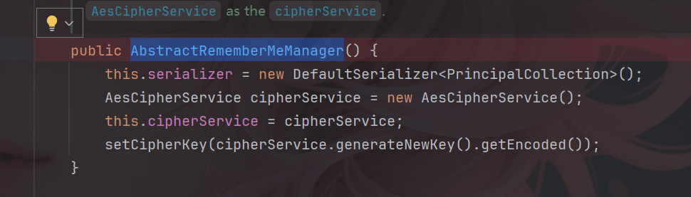 首先,找到org.apache.shiro.mgt.AbstractRememberMeManager#AbstractRememberMeManager这个方法就是之前shiro550中找到密钥的方法。