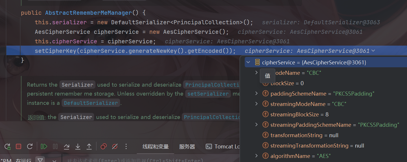 然后看到其加密是调用了AesCipherService这个类的,跟进这个类