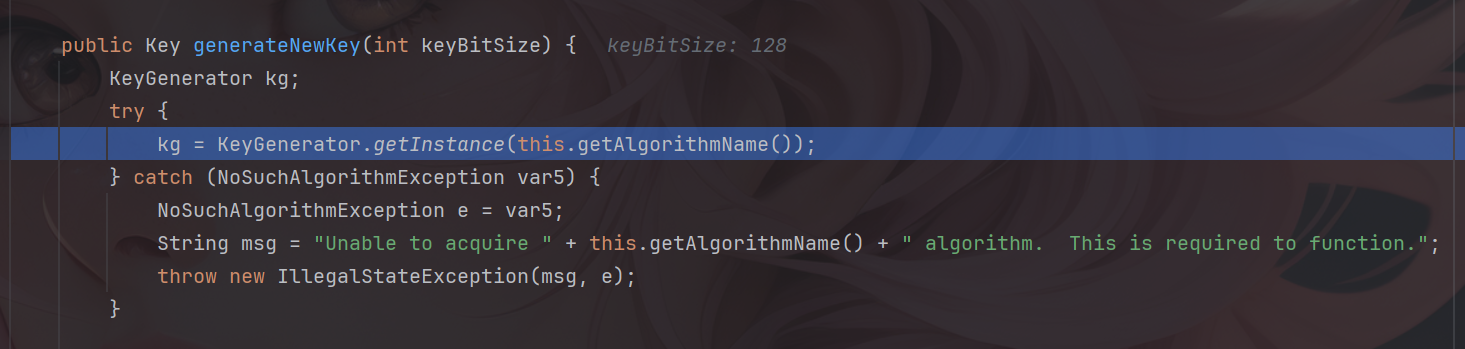 首先可以看到其初始化的一些参数, shiro是通过generateNewKey()方法来获取密钥的,所以调试到generateNewKey中