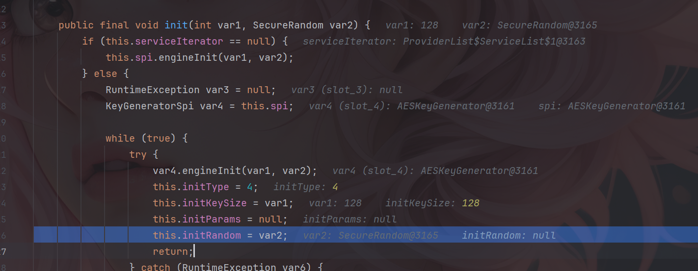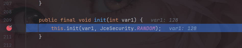 其中JceSecurity.RANDOM是一个预定义的 SecureRandom 对象,通常用于提供安全的随机数,随后步入到下面的init()方法中,