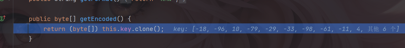 可以看到密钥已经成功生成了,随后跟进到getEncoded中。