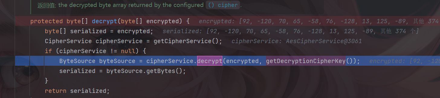 首先找到解密函数org.apache.shiro.mgt.AbstractRememberMeManager#decrypt()