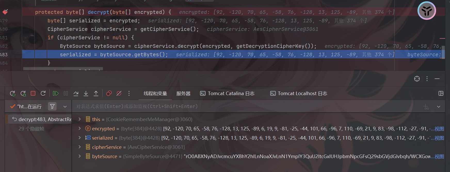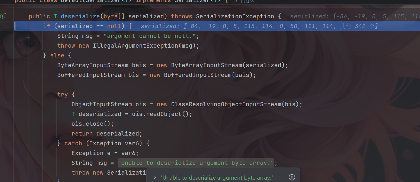 当没有报出异常时,程序将继续运行,从而获取于返回解密后的序列化数据。