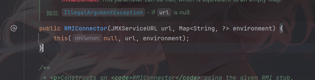 当然调用条件为rmiServer=null,寻找可以让rmiServer为null的构造方法,找到RMIConnector