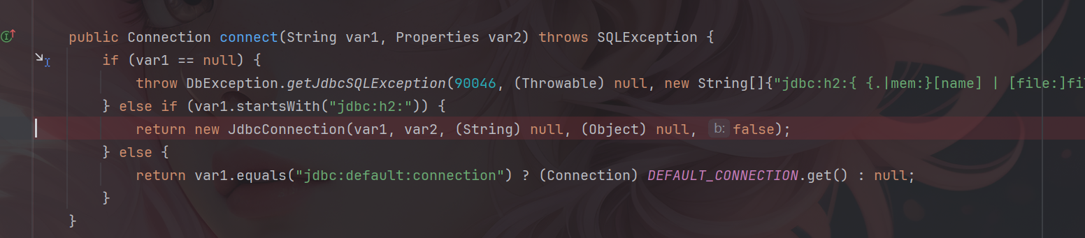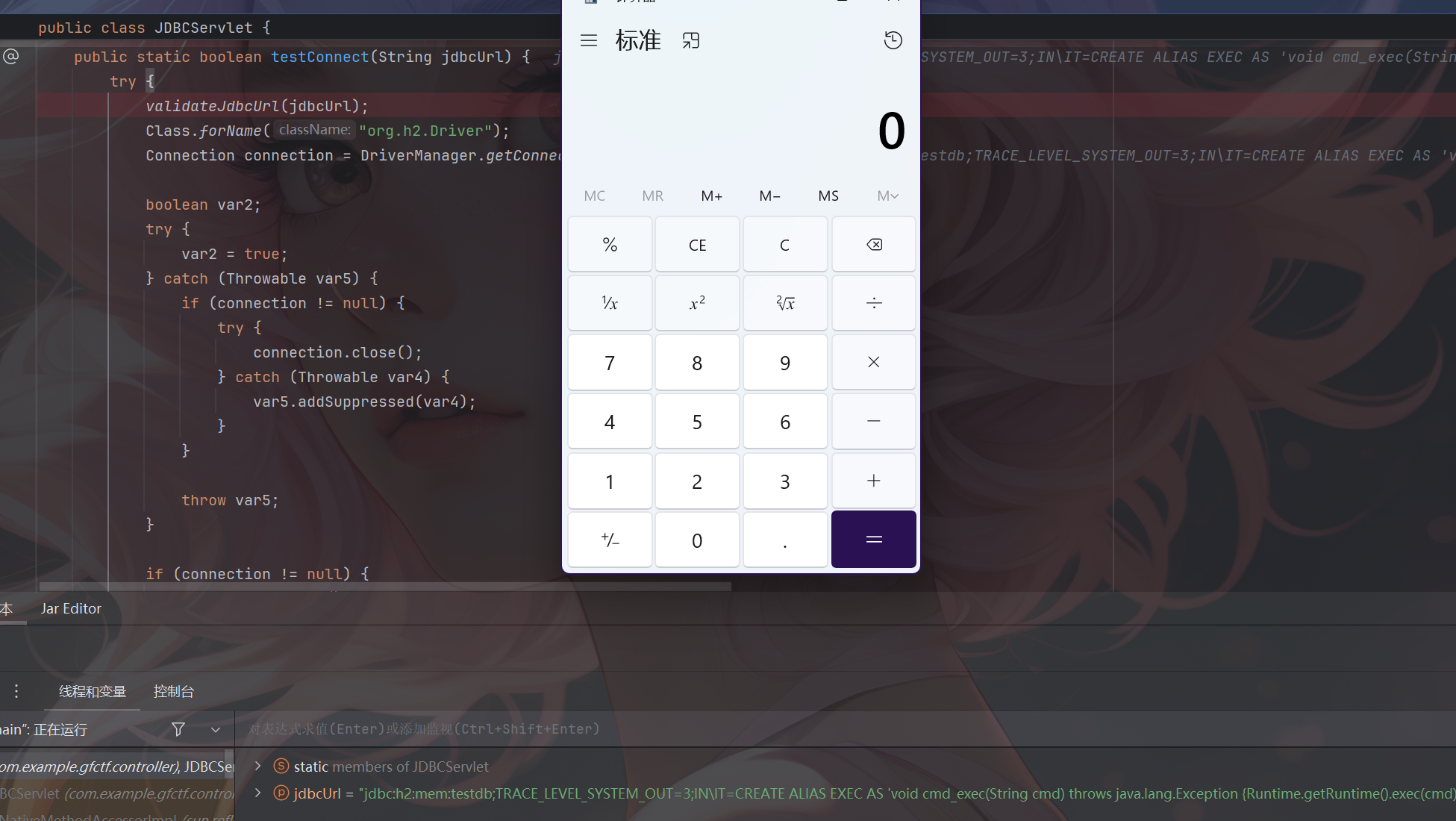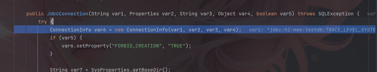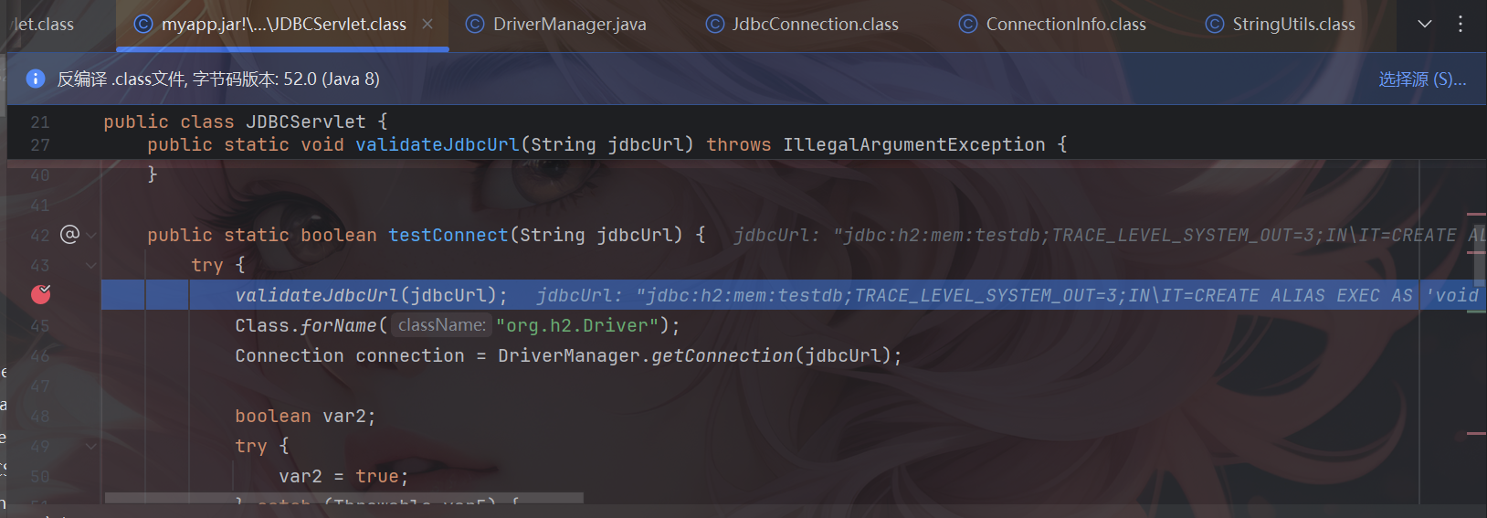 绕过鉴权之后,可以访问到目标路由/testConnect了,看到JDBCServlet类。