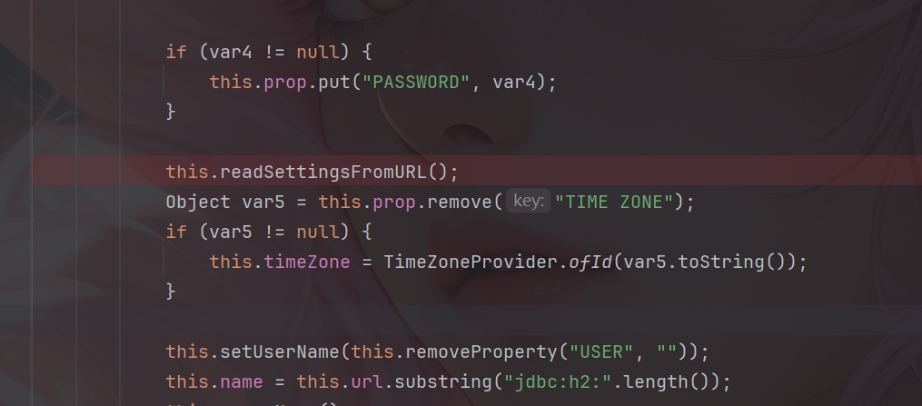 一直过到readSettingsFromURL这个方法会从传入的数据库连接 URL 中解析并提取连接所需的其他配置或设置。