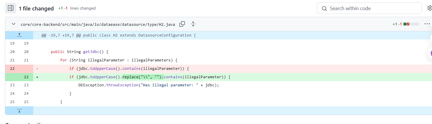 这里的H2 JDBC RCE是来自于dataease这的fix。