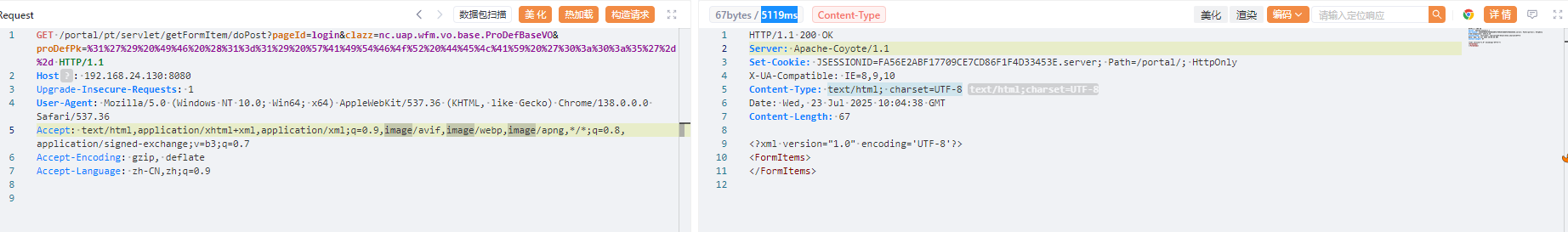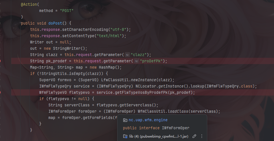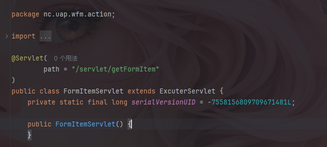 该漏洞位于portal端getFormItem接口,定位到nc.uap.wfm.action.FormItemServlet类