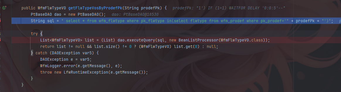 其中获取了proDefPk参数并将其传入getFlwTypeVosByProdefPk方法。