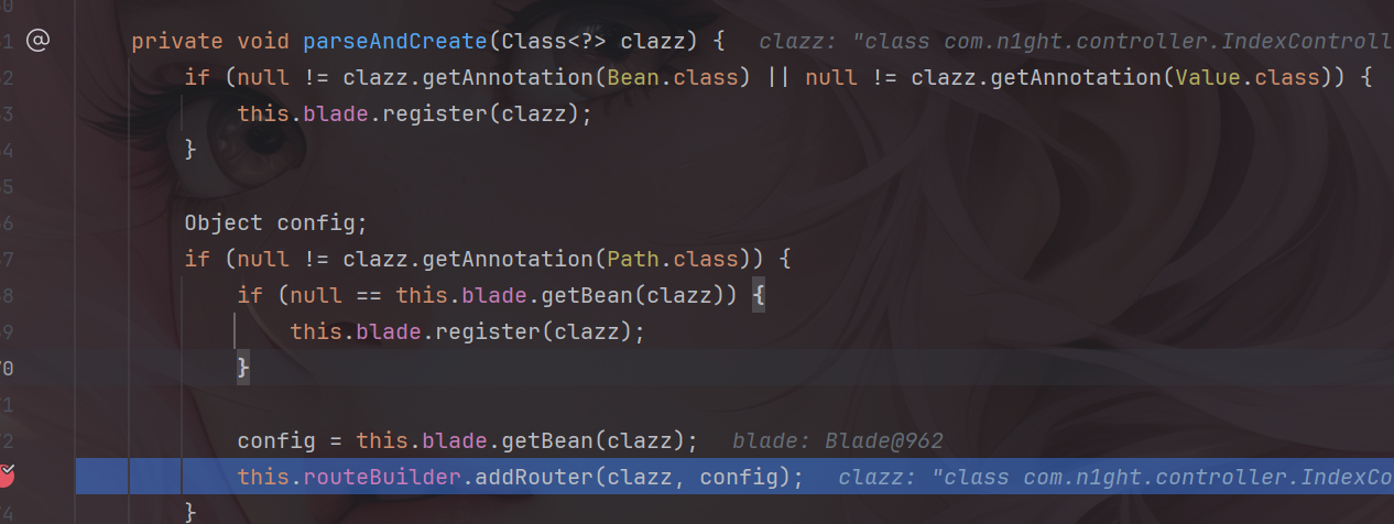 当然因为WebContext里面有Blade实例,因此可以直接使用blade方法去调用,就不需要从内存中遍历出来了,内存马也可以再一次减短。