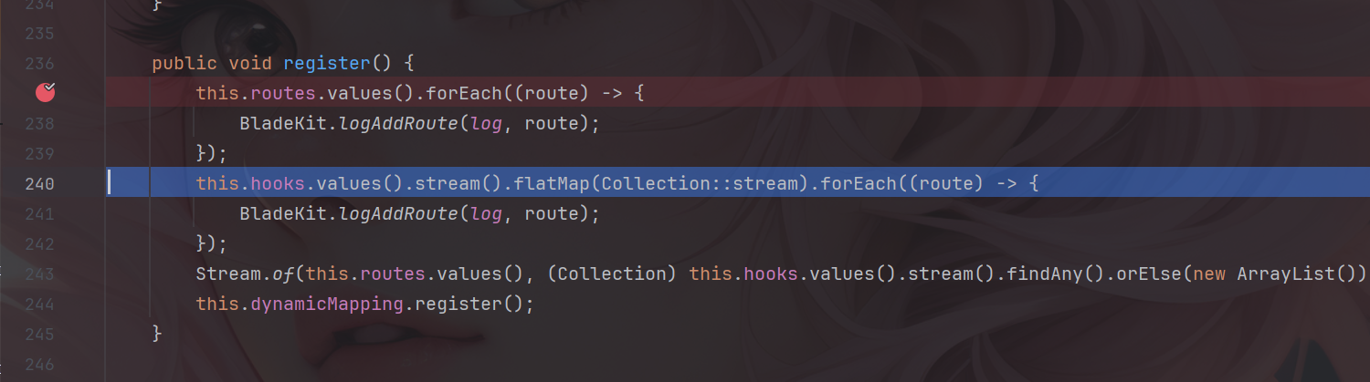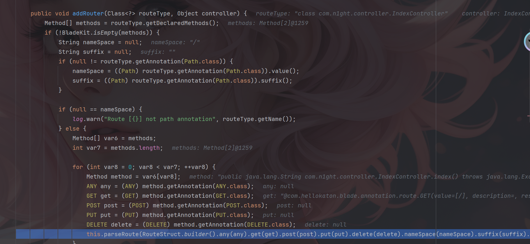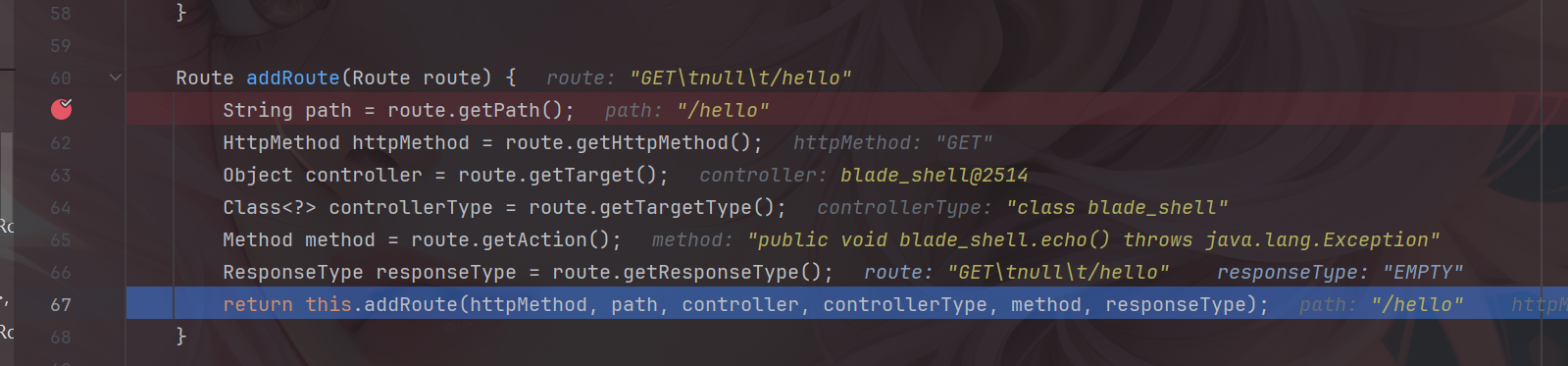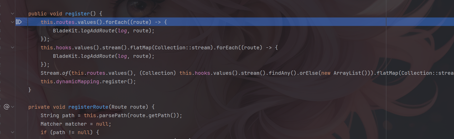 实现动态注册路由 经过分析后,可以发现blade框架是使用routeMatcher.addRoute以及register这俩个方法来注册路由的,因此可以构造一个Route然后反射调用routeMatcher.addRoute和register方法来实现自己注册路由。