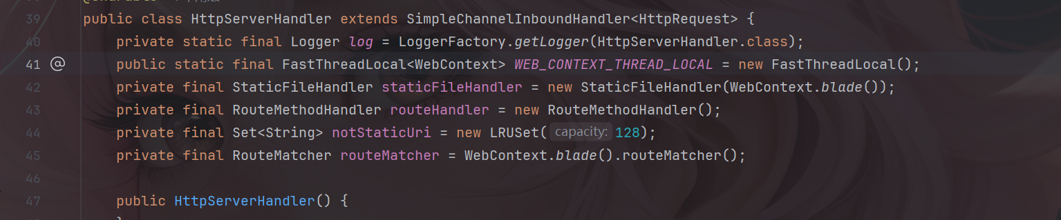 这个类是在HttpServerHandler中调试时发现的,这里有一个好像啥都没有用到的全局变量,并且通过名字可以猜测其是储存WebContext的。